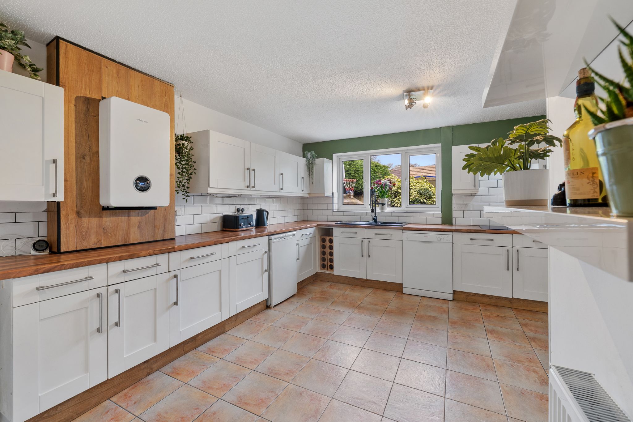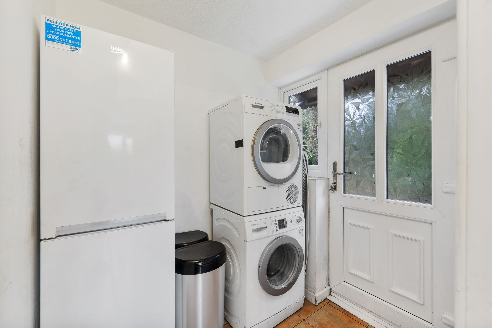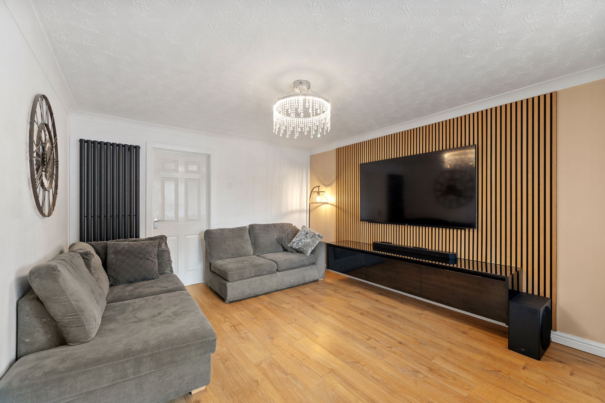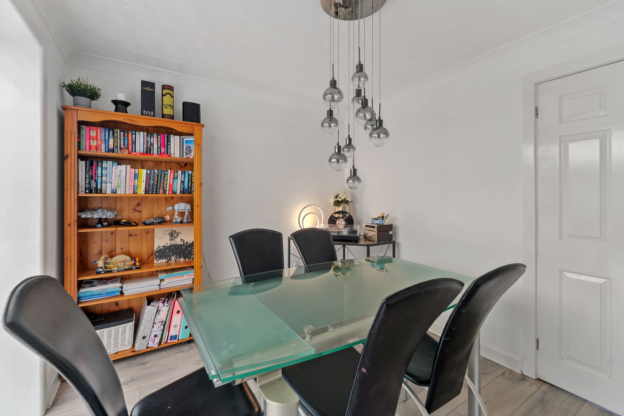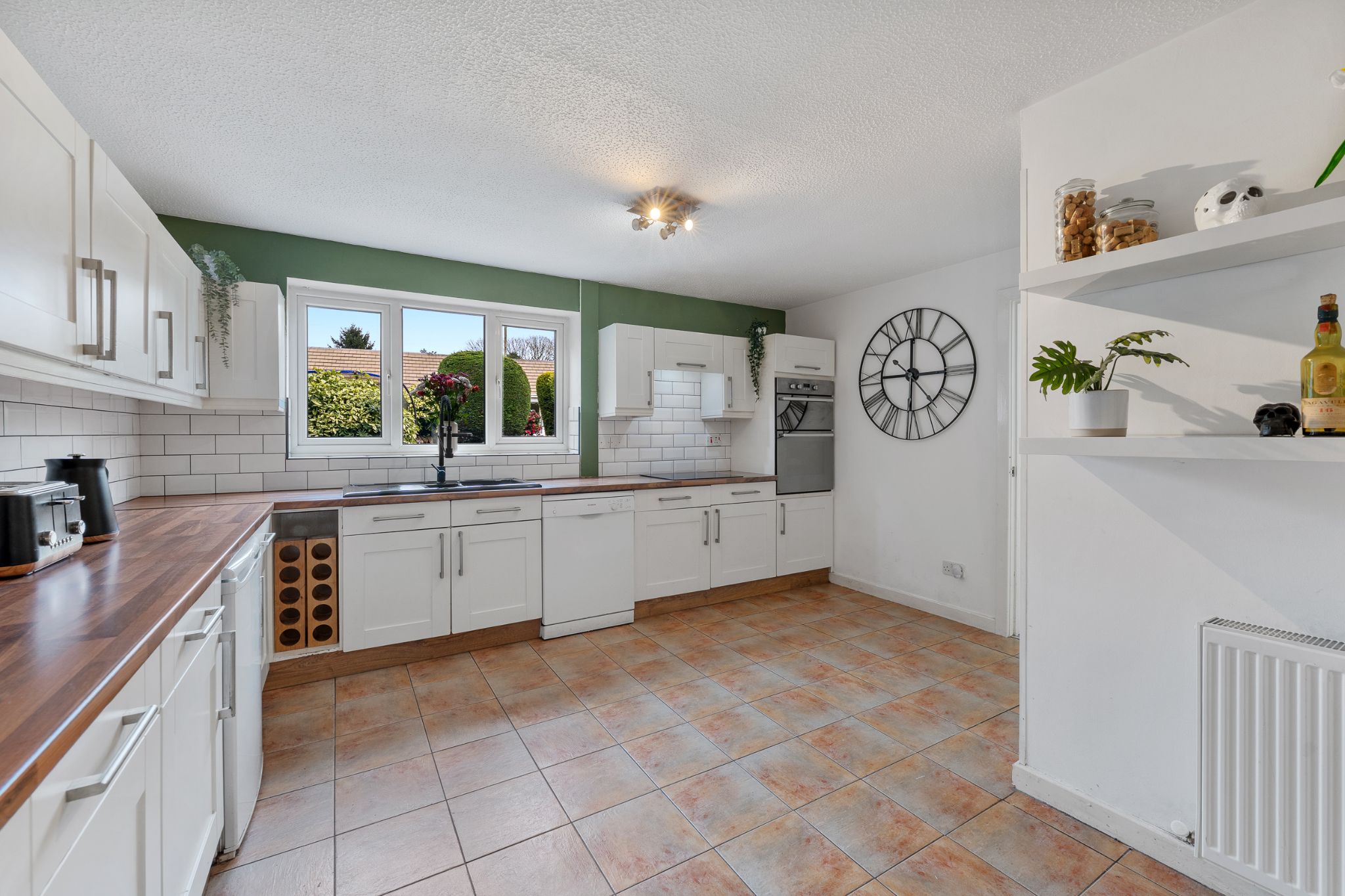 Step into the welcoming entrance hallway and through the double doors to your right you will discover the lounge, featuring a front-facing bay window and stylish wall panelling. A door leads through to the dining area, which offers ample space for a dining table and flows into the conservatory—an ideal additional sitting area. With wraparound windows and patio doors opening onto the rear garden, this space is flooded with natural light. The kitchen can be accessed from the entrance hallway or dining area and is fitted with a range of ivory wall and base units. Integrated appliances include an electric hob, oven, grill, and sink, with additional space for an undercounter fridge and dishwasher. The adjoining utility room offer space for a fridge freezer, washing machine, and dryer, along with a side door providing access to the rear garden. Returning to the entrance hallway, to the left there is a versatile reception room, currently used as a playroom but could be equally suited as a home office or snug. A convenient downstairs WC completes the ground floor.