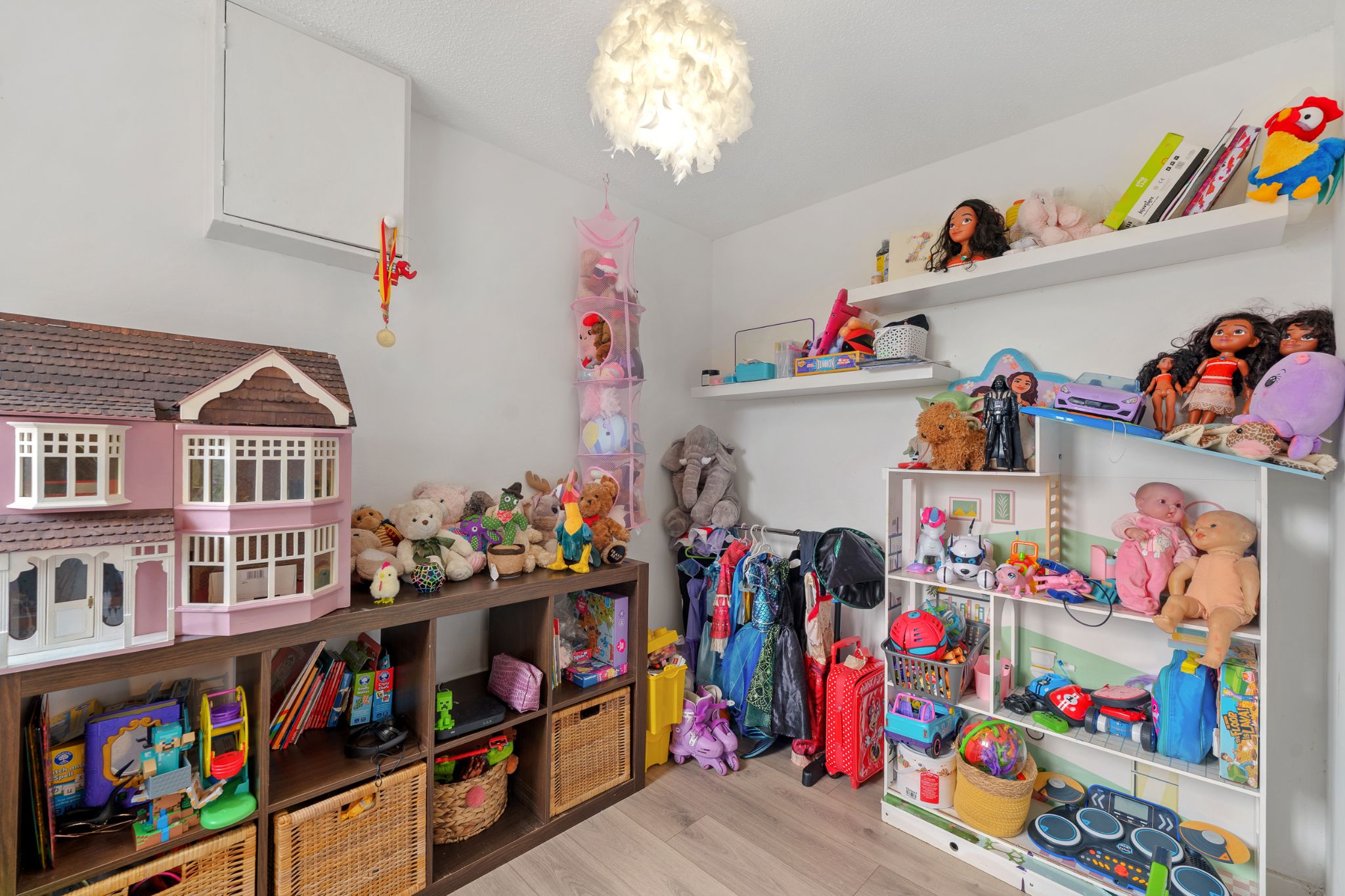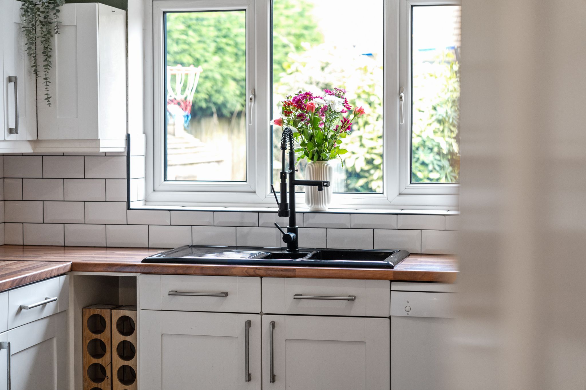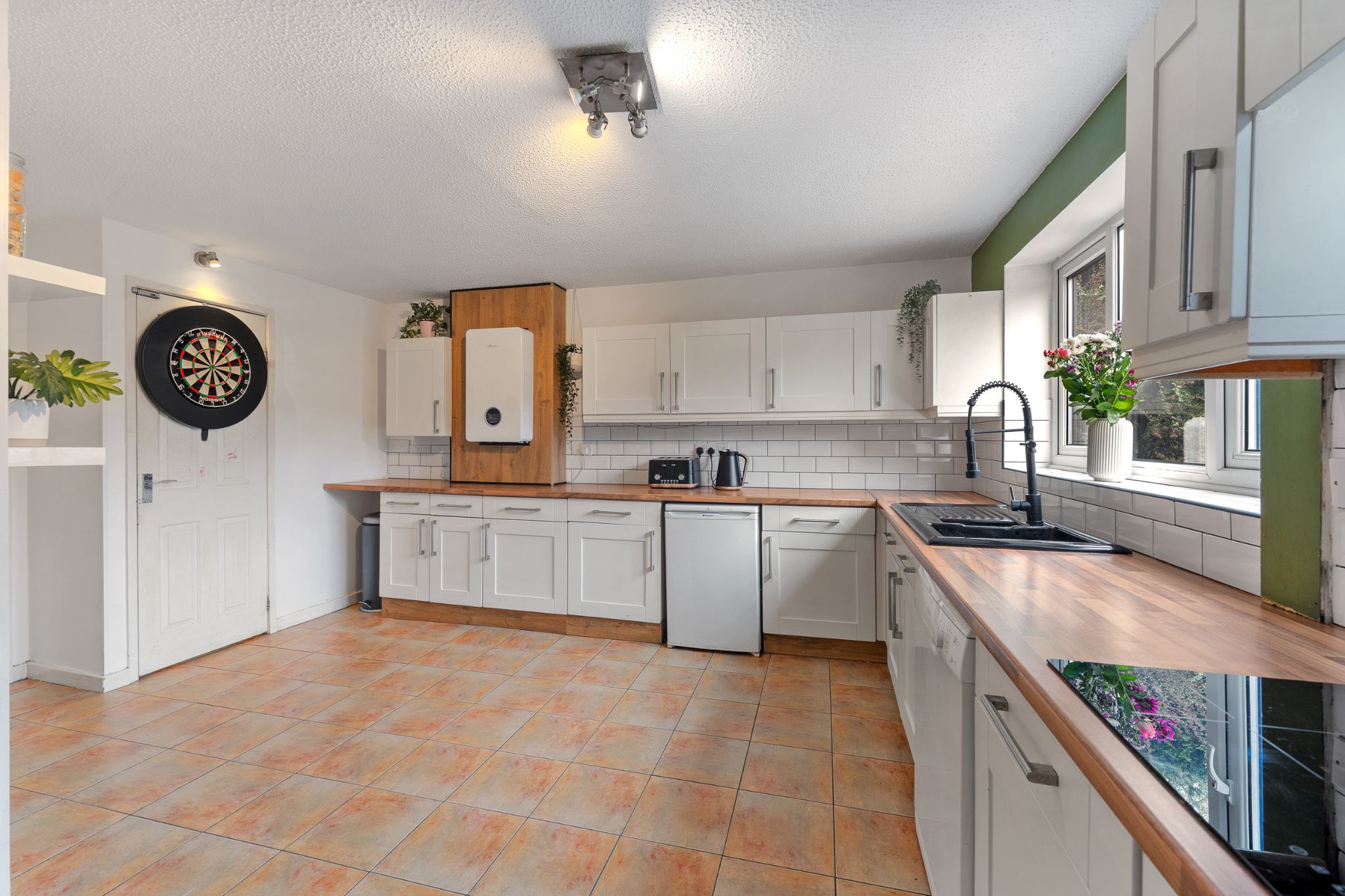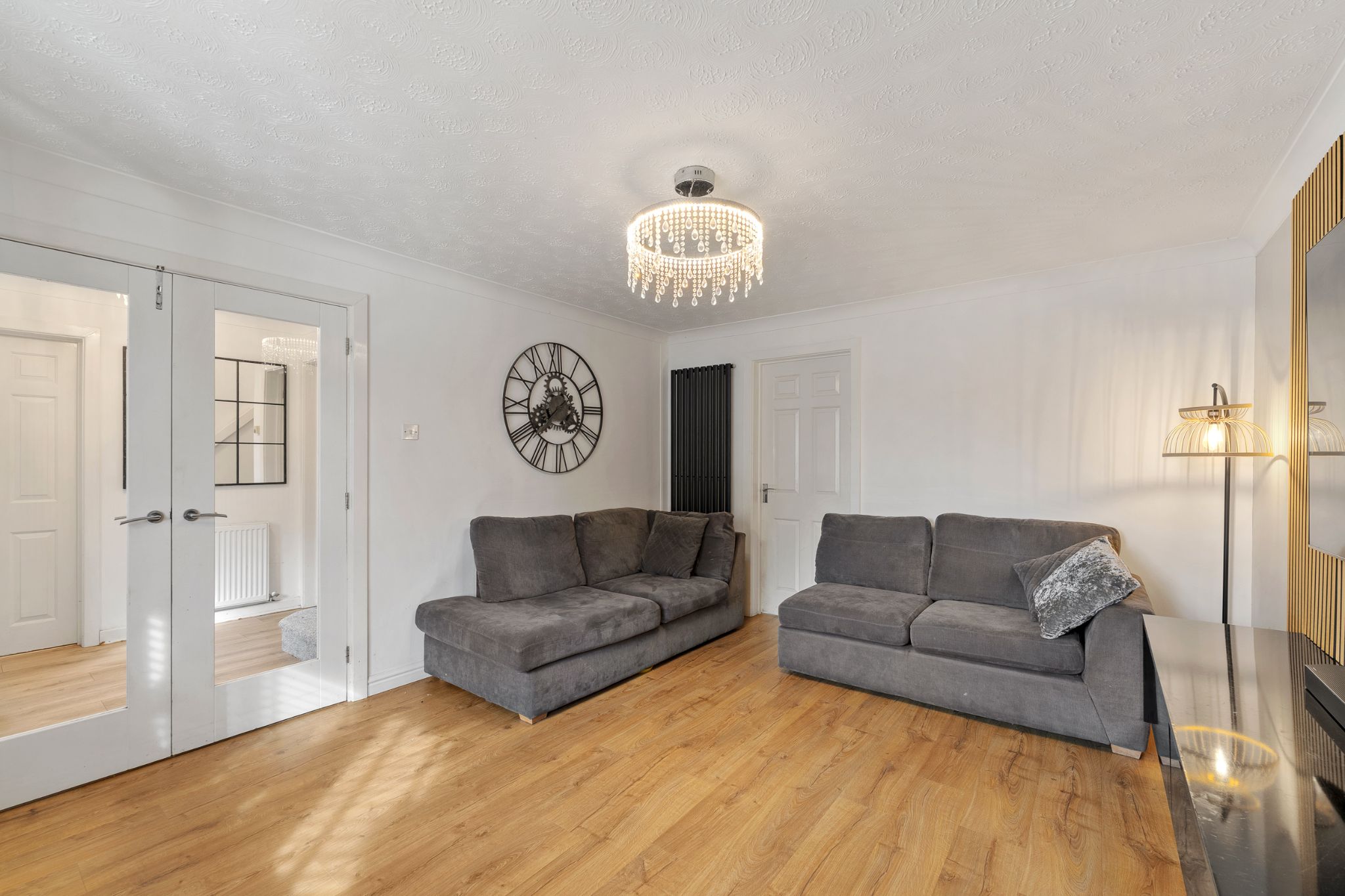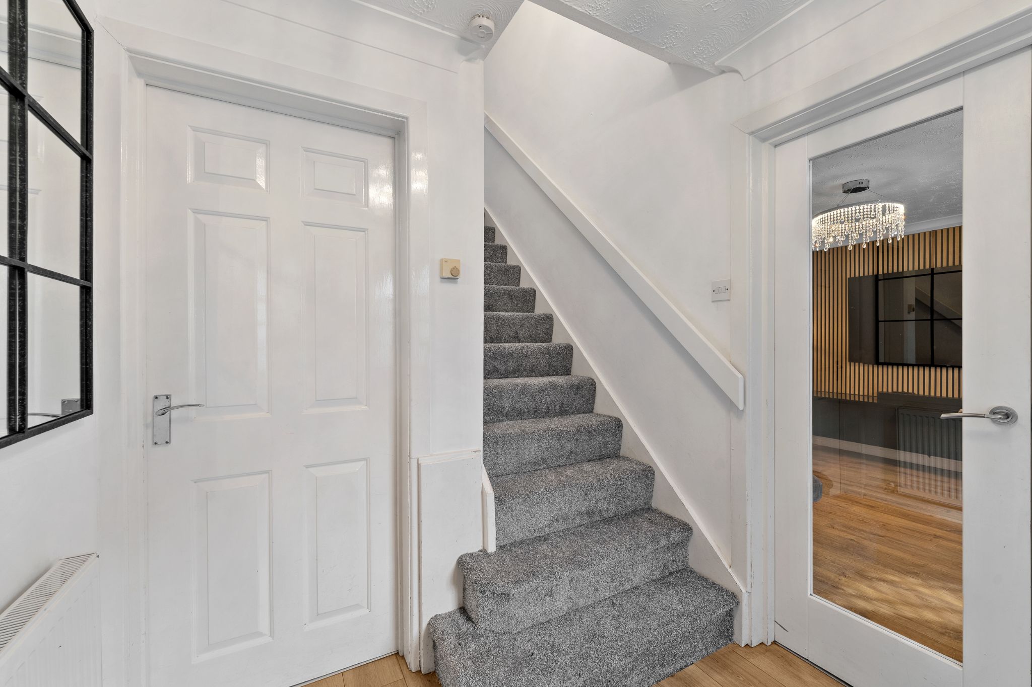 Step into the welcoming entrance hallway and through the double doors to your right you will discover the lounge, featuring a front-facing bay window and stylish wall panelling. A door leads through to the dining area, which offers ample space for a dining table and flows into the conservatory—an ideal additional sitting area. With wraparound windows and patio doors opening onto the rear garden, this space is flooded with natural light. The kitchen can be accessed from the entrance hallway or dining area and is fitted with a range of ivory wall and base units. Integrated appliances include an electric hob, oven, grill, and sink, with additional space for an undercounter fridge and dishwasher. The adjoining utility room offer space for a fridge freezer, washing machine, and dryer, along with a side door providing access to the rear garden. Returning to the entrance hallway, to the left there is a versatile reception room, currently used as a playroom but could be equally suited as a home office or snug. A convenient downstairs WC completes the ground floor.